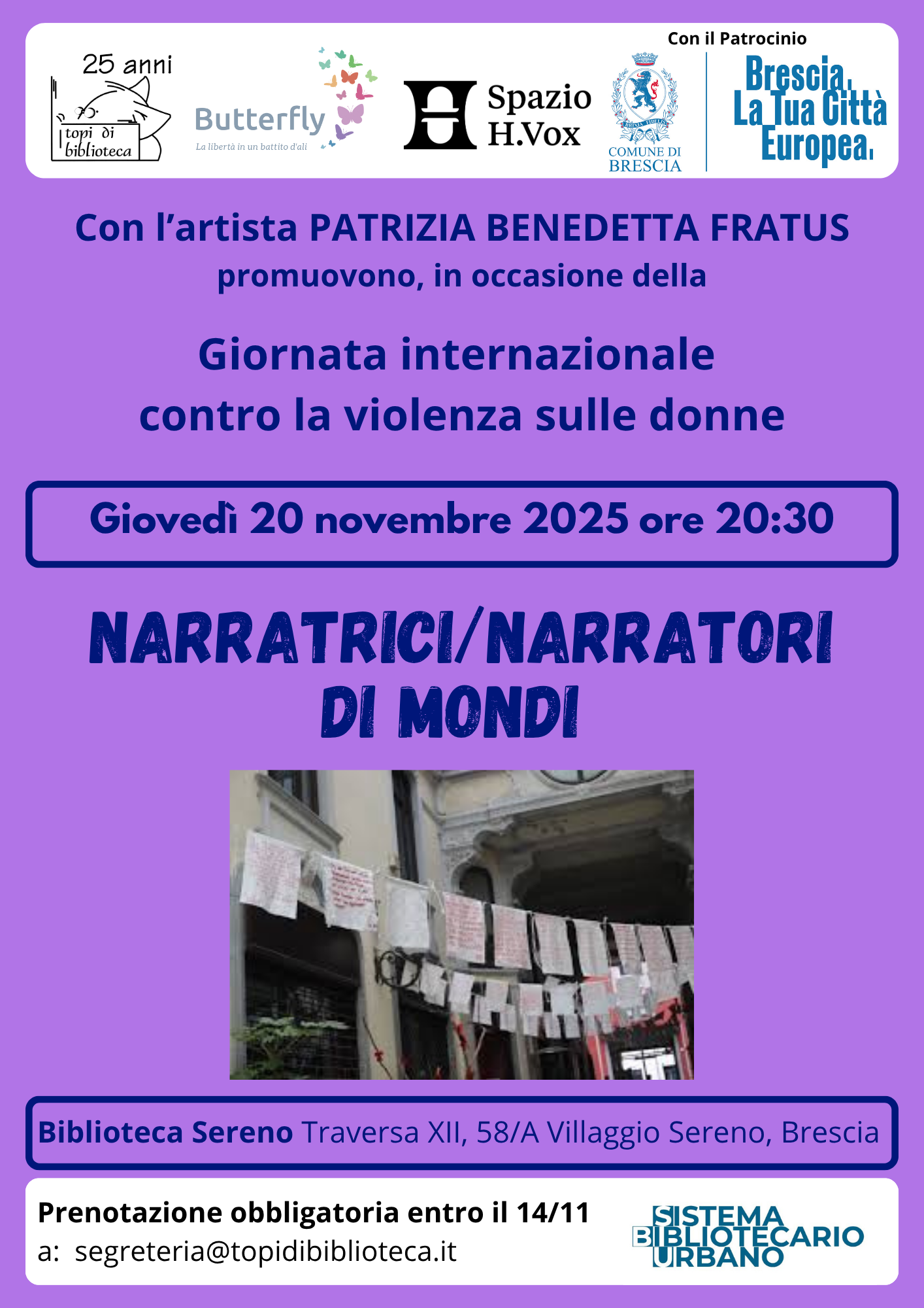 Per partecipare è richiesta la prenotazione entro il 14 novembre a: segreteria@topidibiblioteca.it
